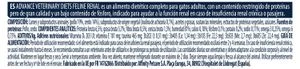 - Comida húmeda completa dietética para gatos adultos con insuficiencia renal crónica o aguda, para ayudar a la función renal