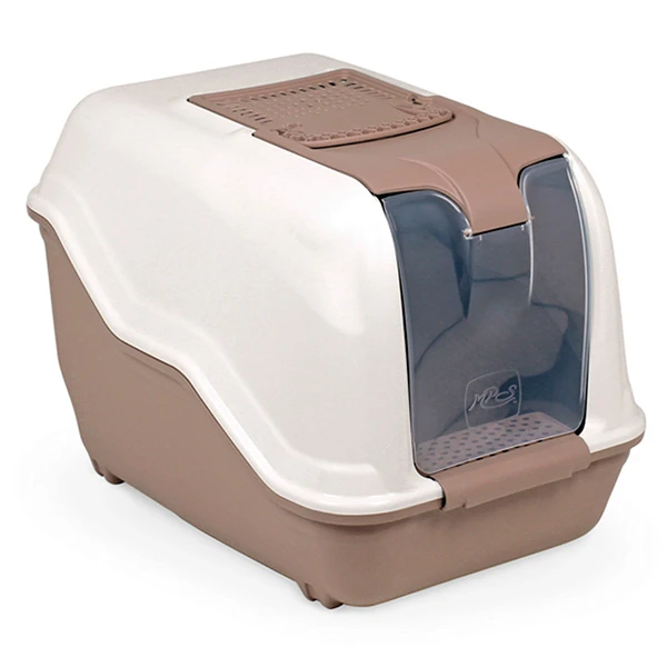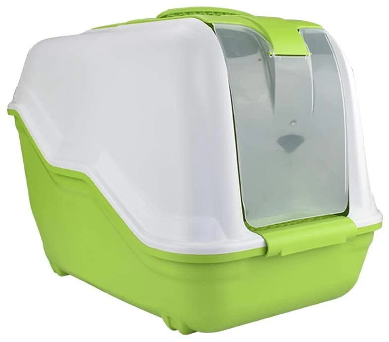 Caseta higiénica cerrada, para reducir la dispersión de los granos de arena y los malos olores. Fabricada con plástico de primera calidad, no tóxico y resistente a los rayos UV. Medida: 54 x 39 x 40 cm