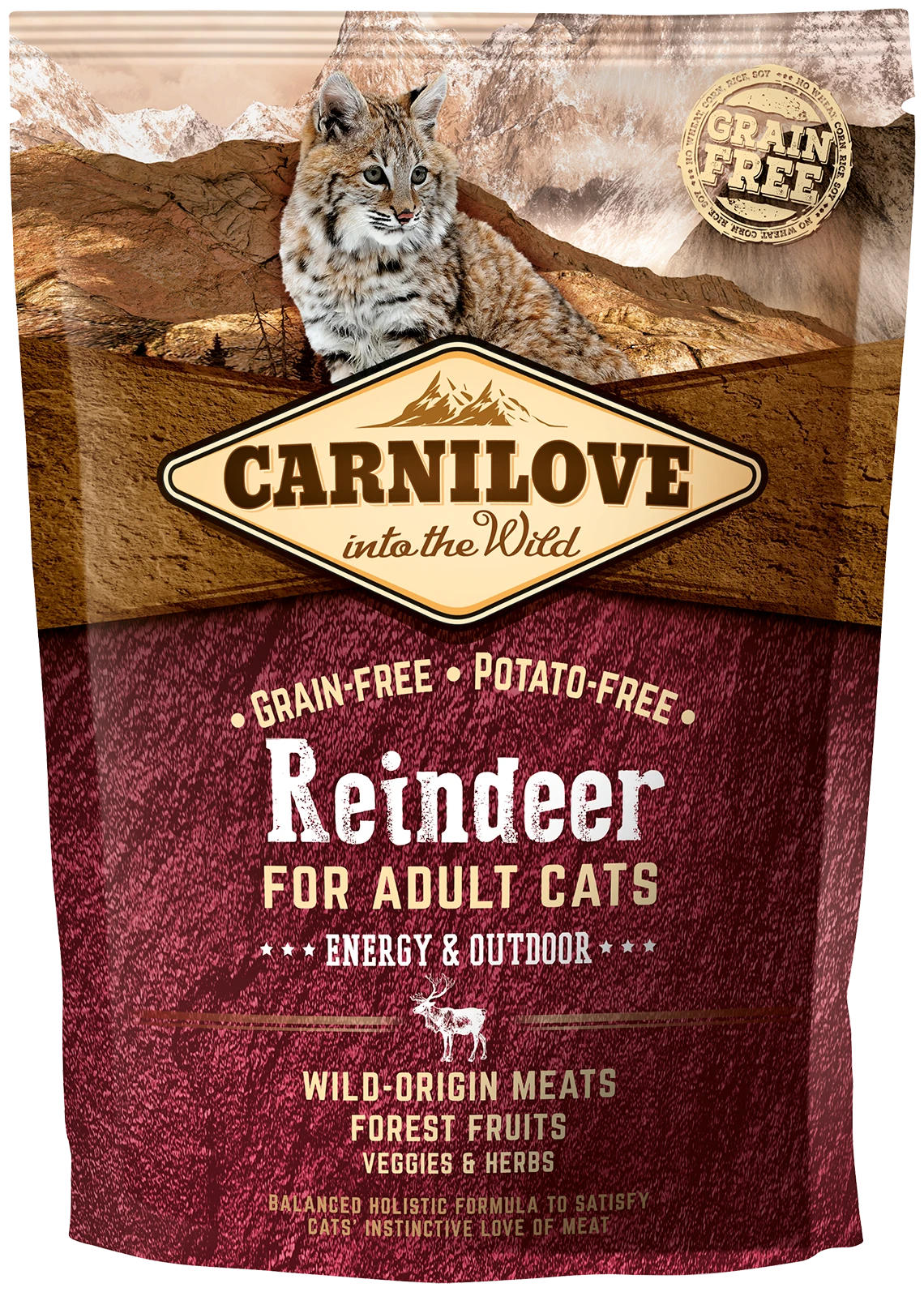 Carnilove Reindeer for Adult Cats se ha formulado respetando la composición natural de la alimentación felina. Gracias a su elevada concentración de antioxidantes naturales, grasas no saturadas y ácidos grasos Omega-3, la carne de reno es idónea para reponer fuerzas después de cada aventura felina.