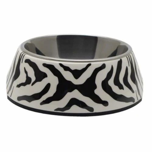 – El comedero exterior decorado y el interior de aceroinoxidable.