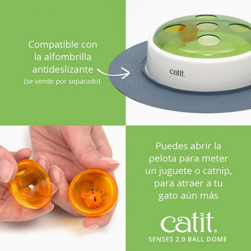 El Catit Ball Dome es un juguete interactivo que te permitirá mantener a tu gato entretenido durante horas. El juguete está compuesto por una placa giratoria y una pelota con agujeros en la cubierta para que tu gato pueda intentar atrapar la pelota y desarrollar su instinto cazador.