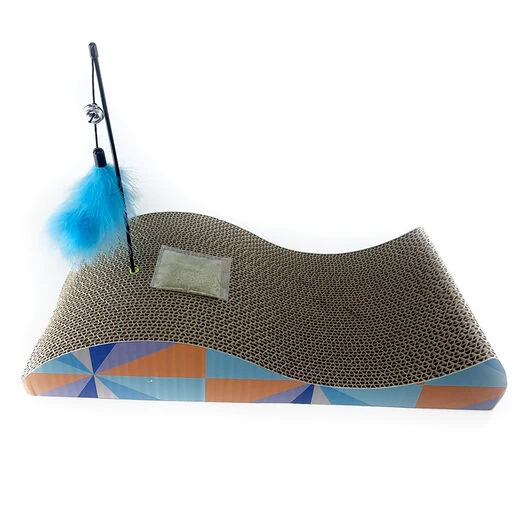 Este rascador para gatos se asemeja a una ola para darle mucha más diversión a tu mascota mientras está en él. Además, posee una caña con pluma para incentivarlo a jugar y estar muchas horas encima de este producto.