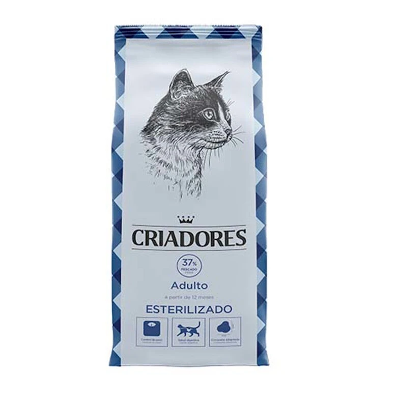 El pienso para gatos esterilizados de Criadores es una receta muy completa, con abundante pescado blanco acompañado de arroz, verduras y legumbres que tienen un efecto saciante por su aporte de fibra. Es una receta con alimentos bajos en grasas.