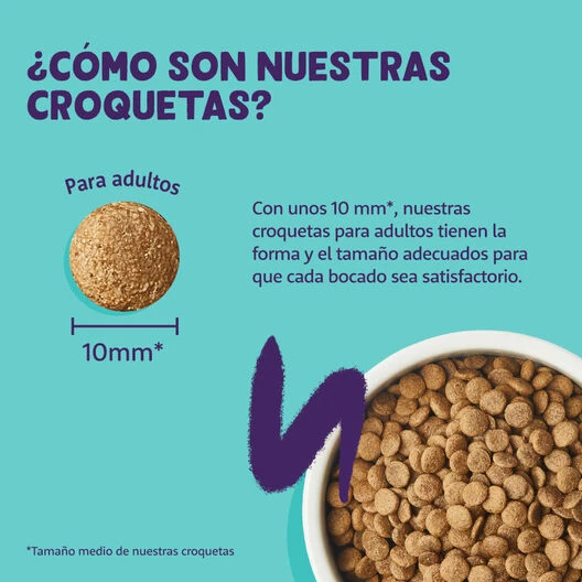- Croquetas crujientes adaptadas a la mandíbula de tu mascota.