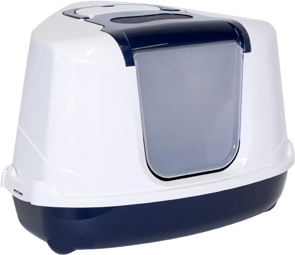 Es una caja de arena con capucha que se puede limpiar sin quitar la campana. Su diseño especial le permite colocar la caja de arena en cualquier esquina que desee.