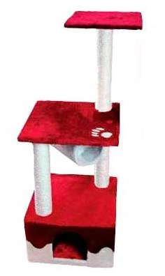 Y si no fuera suficientemente atractivo este rascador para tu felino, aún hay más, como, por ejemplo, la cómoda y bella cama que está en el medio de los dos rascadores para que tu gran amigo se suba y pueda tener horas de increíble sueño ahí.