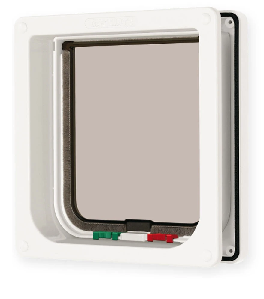 Puerta gatera Cat Mate con 4 posiciones de bloqueo y grosor variable. Permite una instalación fácil y discreta en todas las paredes, puertas y paneles. Apta para superficies hasta 50 mm de grosor. Color: Blanco.