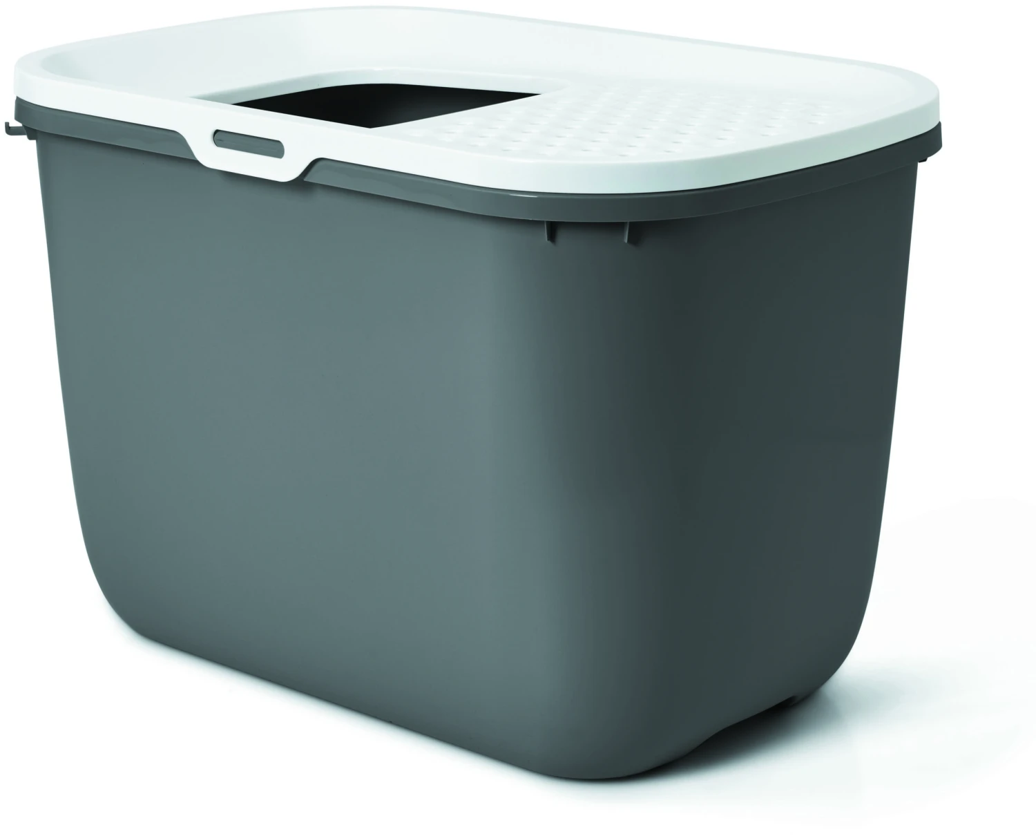 Bandeja sanitaria con entrada superior ideal para aquellos gatos que les gusta orinar parados. Gracias a su pequeña entrada las patas de nuestros felinos se mantendrán limpias.