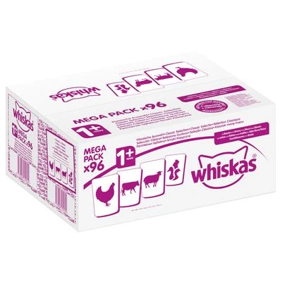 Megapack de 96 sobres de Whiskas 1+ años comida para gatos en bolsitas a un precio sensacional. ¡Ahorra más con el megapack de Whiskas 1+ años!
